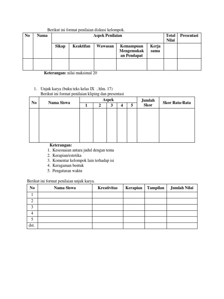 Format Penilaian Siswa - Rubrik Penilaian : Lembar observasi aktivitas siswa selama proses pembelajaran.